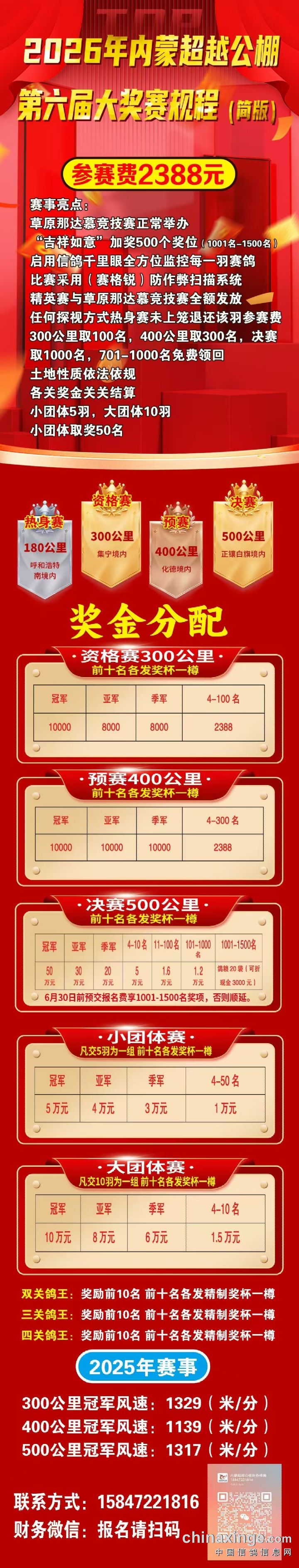 2026年内蒙超越公棚(秋季) 三关鸽王大奖赛第六届竞赛规程