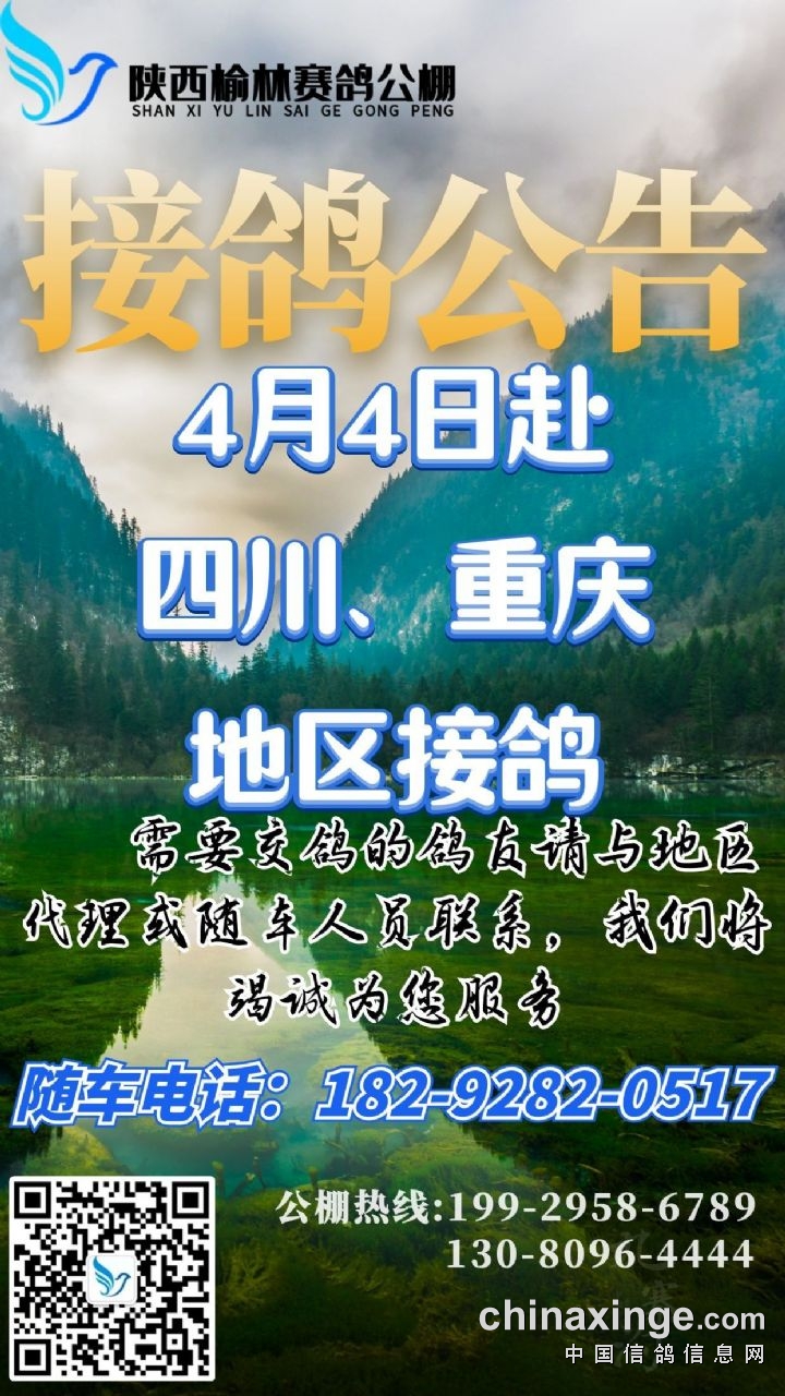 陕西榆林赛鸽公棚4月4日赴四川、重庆地区接鸽公告