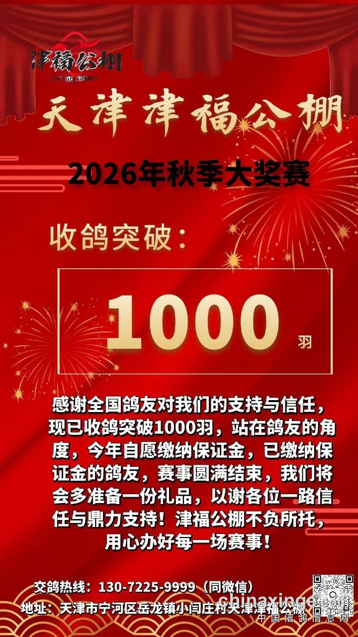 天津津福公棚2026年赛鸽入棚清单