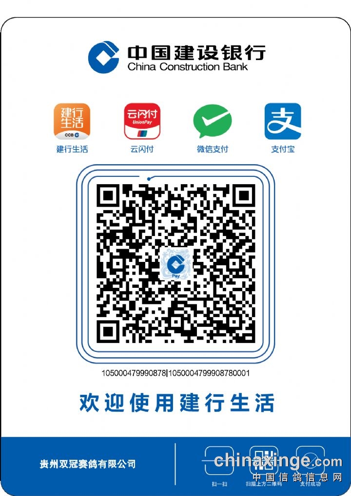 可通过微信扫描或识别下方的收款二维码,填写支付金额,并在备注里填写清楚参赛名称,付款成功后截图发至:19017627711(小利奥)。并且在微信里写清楚鸽主姓名、参赛名称、身份证号、参赛羽数、联系电话等内容。
