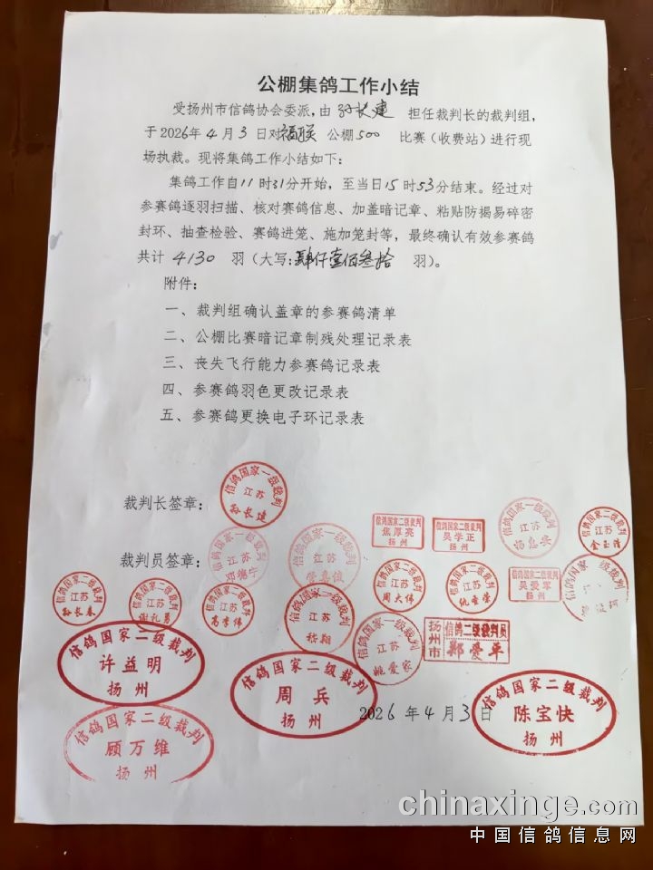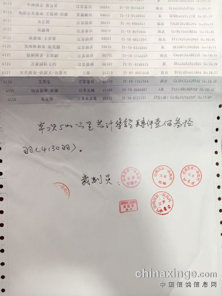 扬州福联翱翔决赛上笼资料(按上笼号)