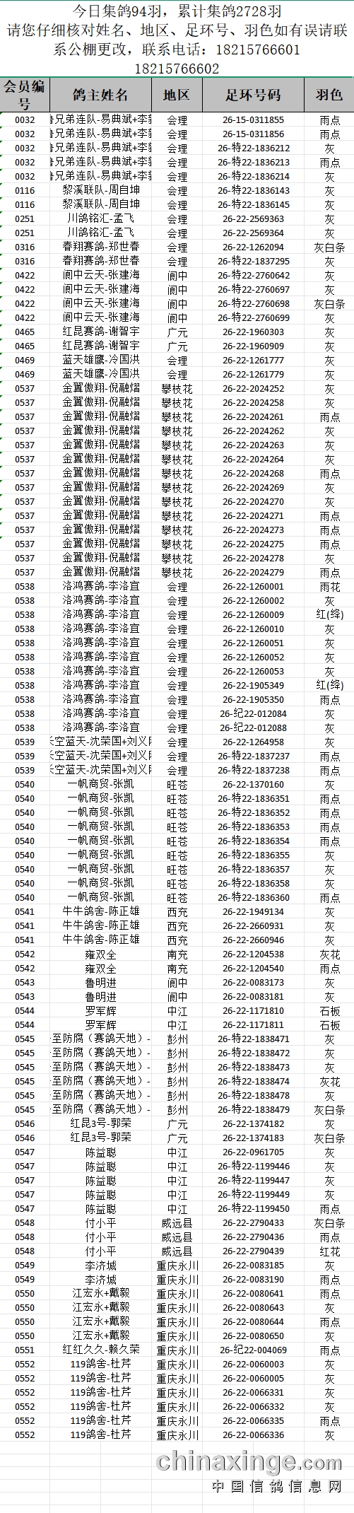 提示:如果此页面是训放清单,要想快速查询鸽环号,请按