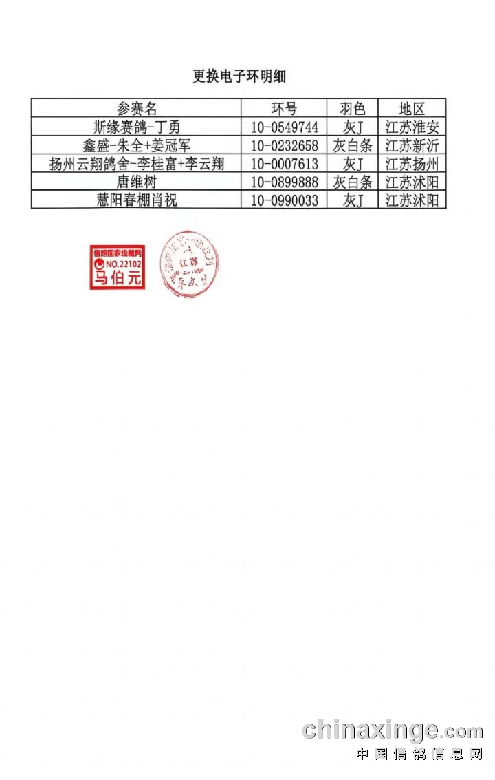 江苏宝宏春棚2026年决赛更改羽色明细
