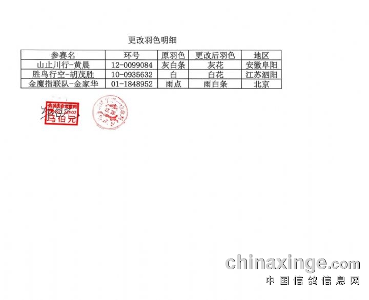 江苏宝宏春棚2026年决赛更改羽色明细