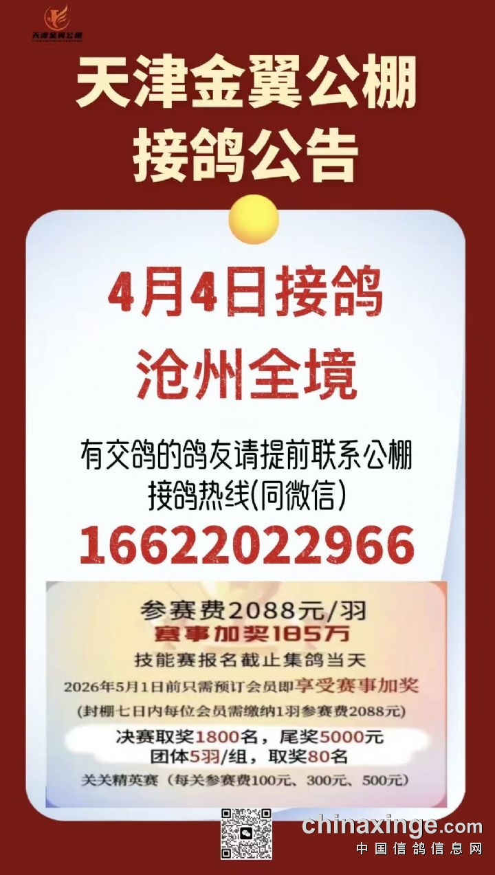 天津金翼公棚2026年第四届收鸽清单(会员查询版)