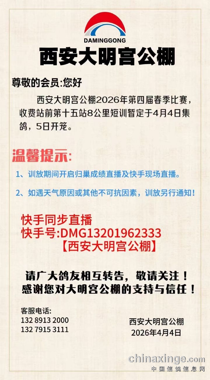 西安大明宫公棚-2026年赛事启用数字鸽实时定位足环
