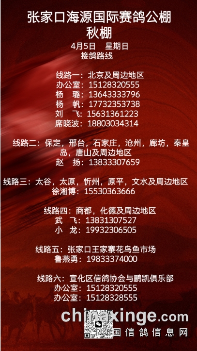 张家口海源国际赛鸽公棚(秋棚)第三届秋季竞赛规程(简版)