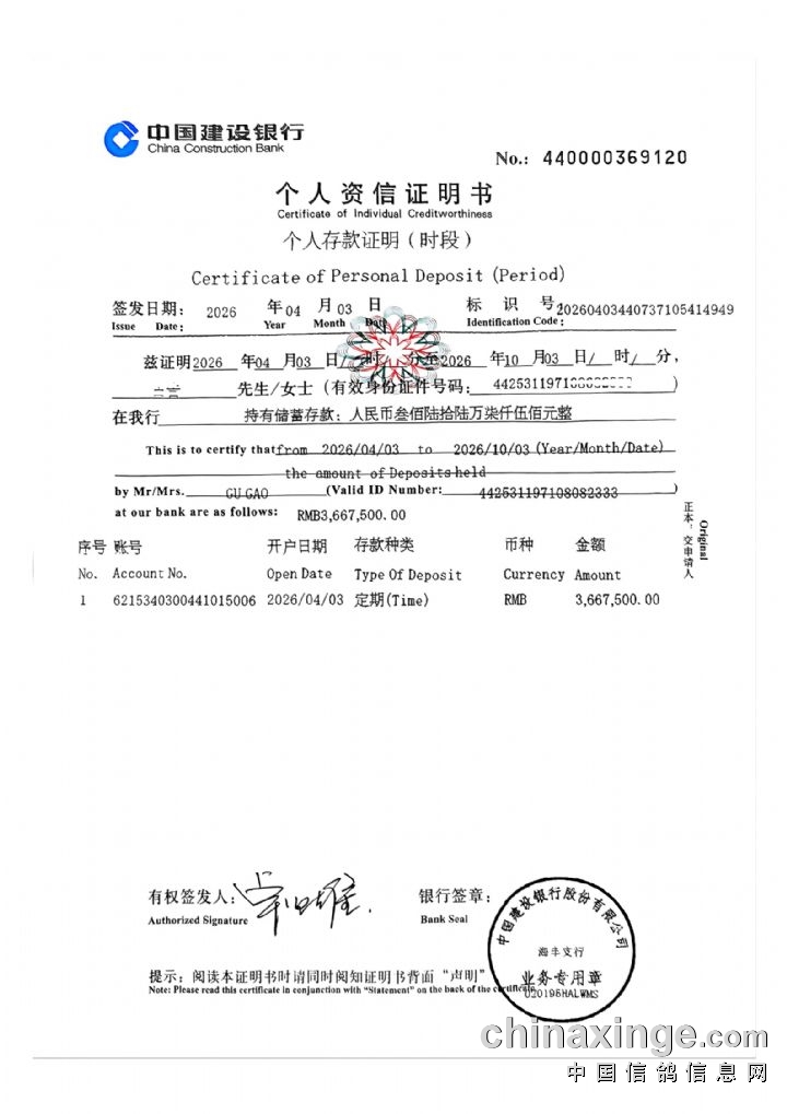 【广东正升博航2026年赛事保证金存入证明】