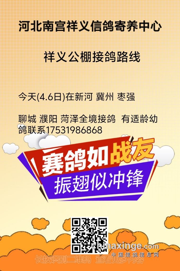祥义公棚接鸽路线 今天4.6日1号车在聊城 菏泽 濮阳 2号车在新河 冀州 枣强