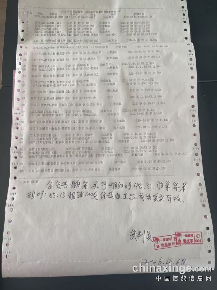 山东金谷春棚 2026年第四届春赛第一关竞翔监放单及司放照片