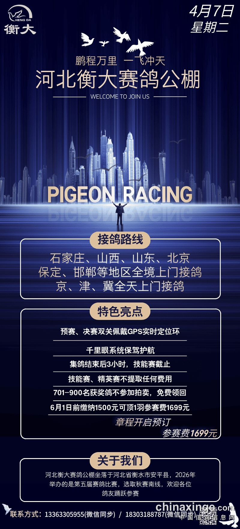 河北衡大:4月7日接鸽路线