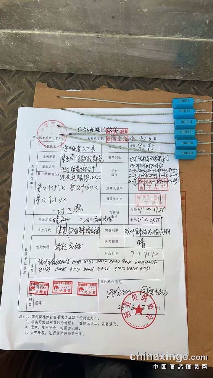 为更好体现公开透明,所有比赛届时均由临沂市信鸽协会裁判及鸽友代表监督训放、比赛全过程。(各关比赛均由上一站次放飞排名1、11、21、31、41、51、61、71、81、91、名的鸽主组成监督团,参加各站比赛的集鸽、登检、入笼,并随车前往监督比赛开笼放飞过程,公棚负责吃住行及监督费用。)