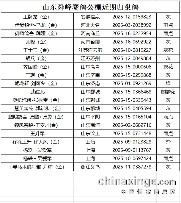 提示:如果此页面是训放清单,要想快速查询鸽环号,请按