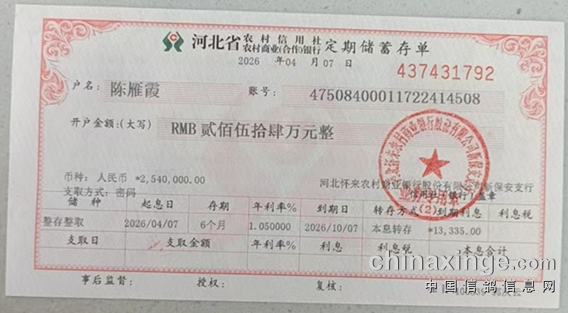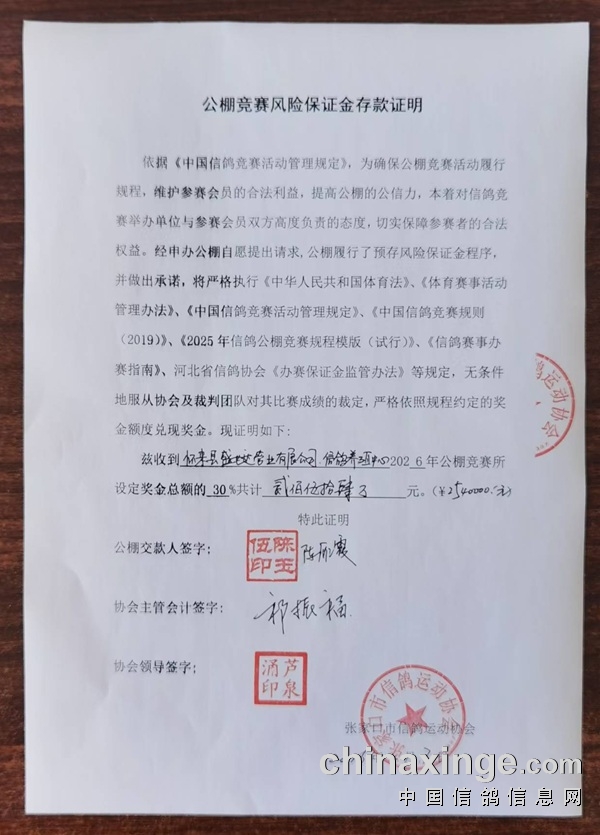 张家口盛世达公棚2026年度竞赛风险保证金已存入三方监管账户