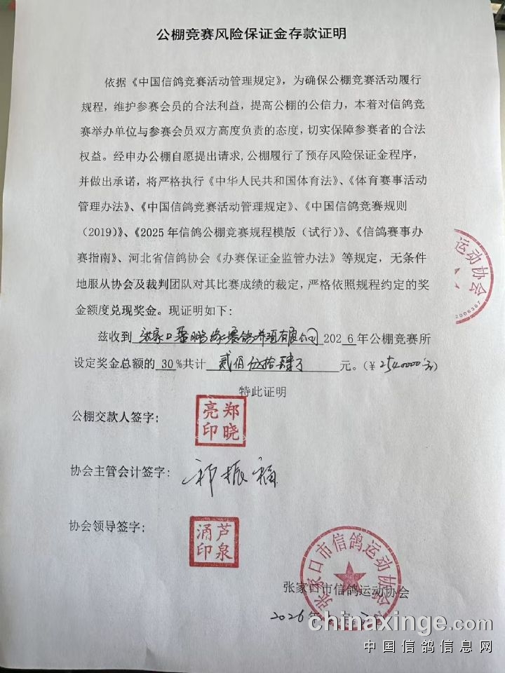 聚鹏缘公棚2026年秋季竞赛风险保证金已存入三方监管账户