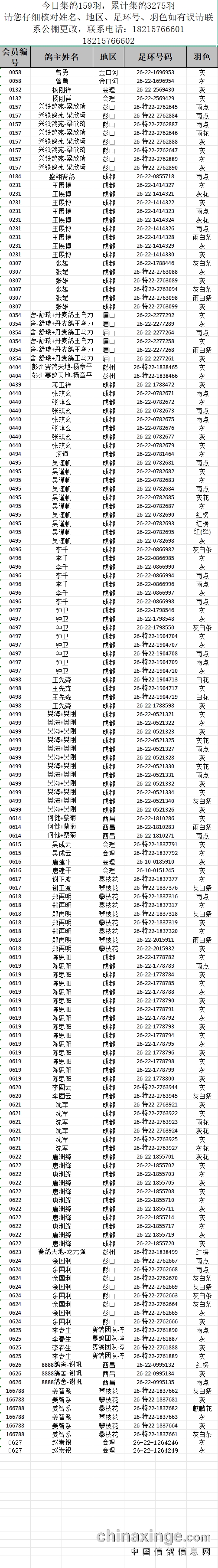 提示:如果此页面是训放清单,要想快速查询鸽环号,请按