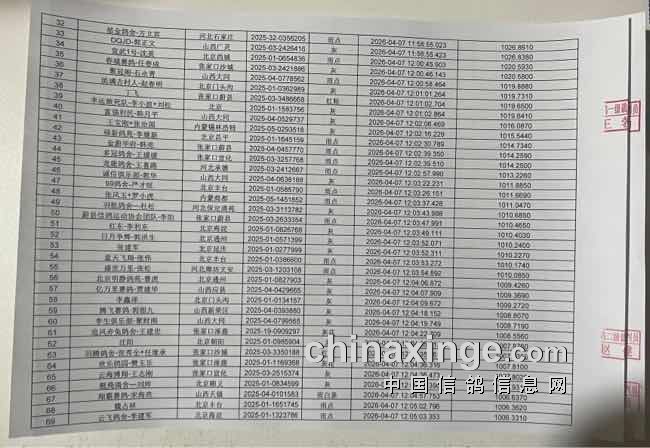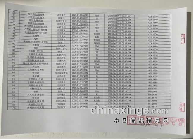 张家口庆翔春棚300公里预赛 “山城文体杯赛” 报名清单