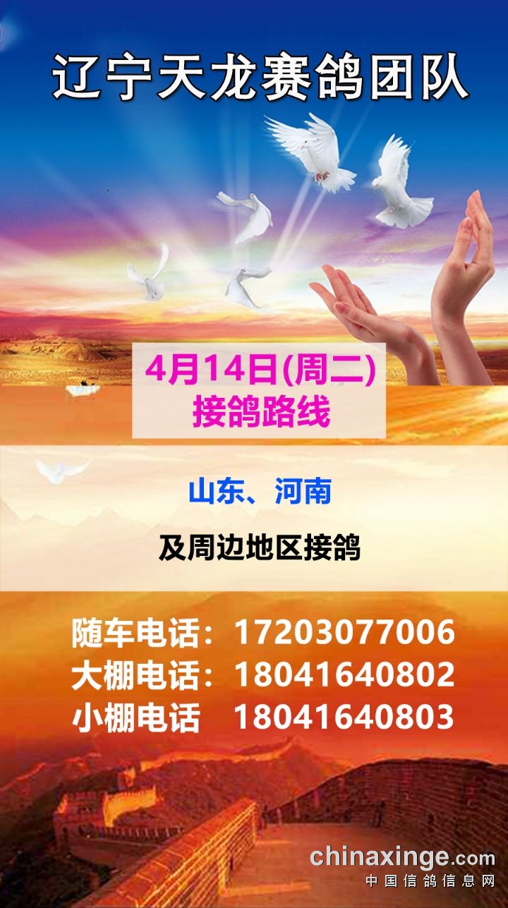 辽宁天龙赛鸽团队4月14日接鸽路线(山东、河南)