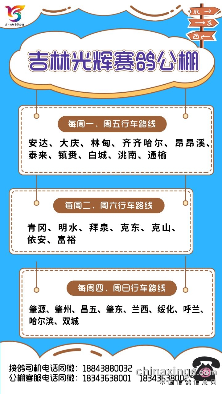 吉林省光辉赛鸽公棚黑龙江每周接鸽路线