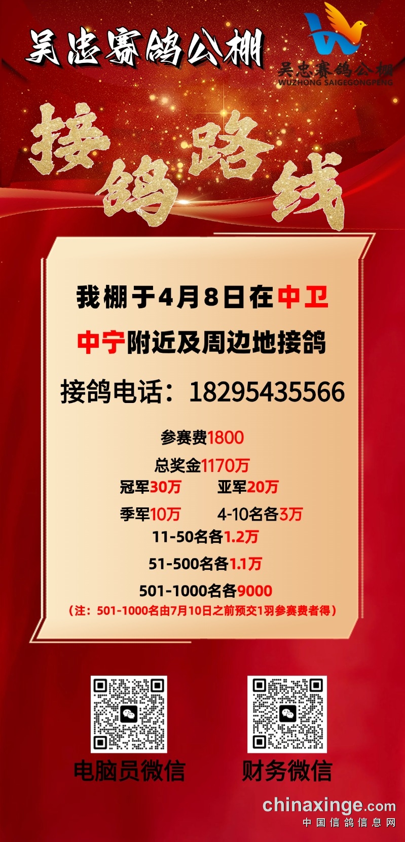 宁夏吴忠赛鸽公棚4月10日银北接鸽路线