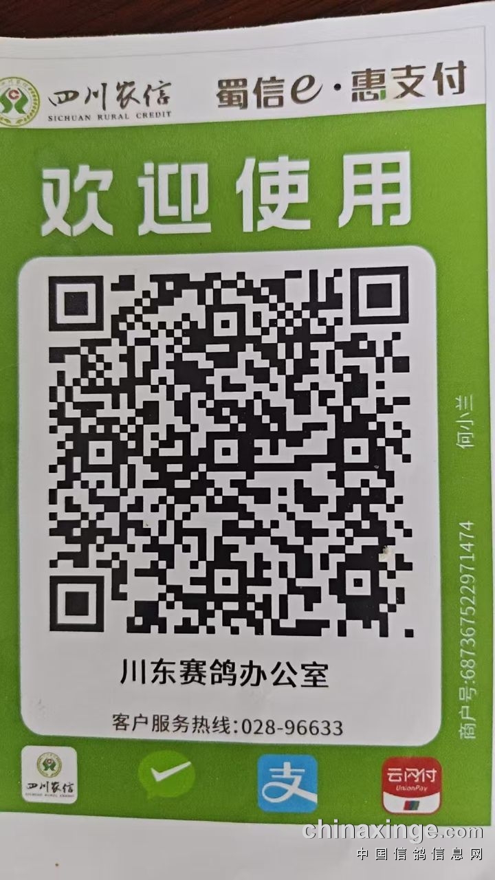 四川农信银行6214 5715 8101 6416 207户名:何小兰(达州市信鸽协会监赛账户)