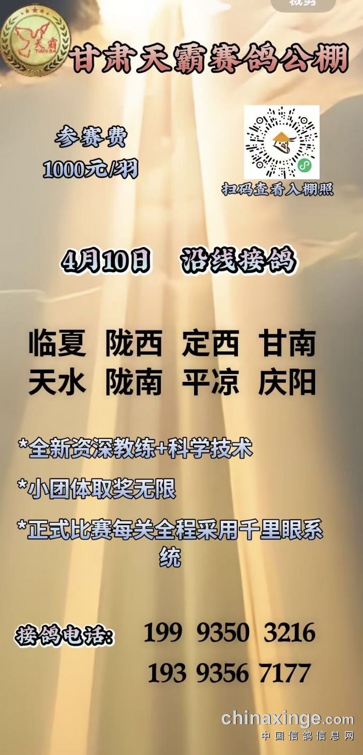甘肃天霸赛鸽公棚4月10日接鸽路线