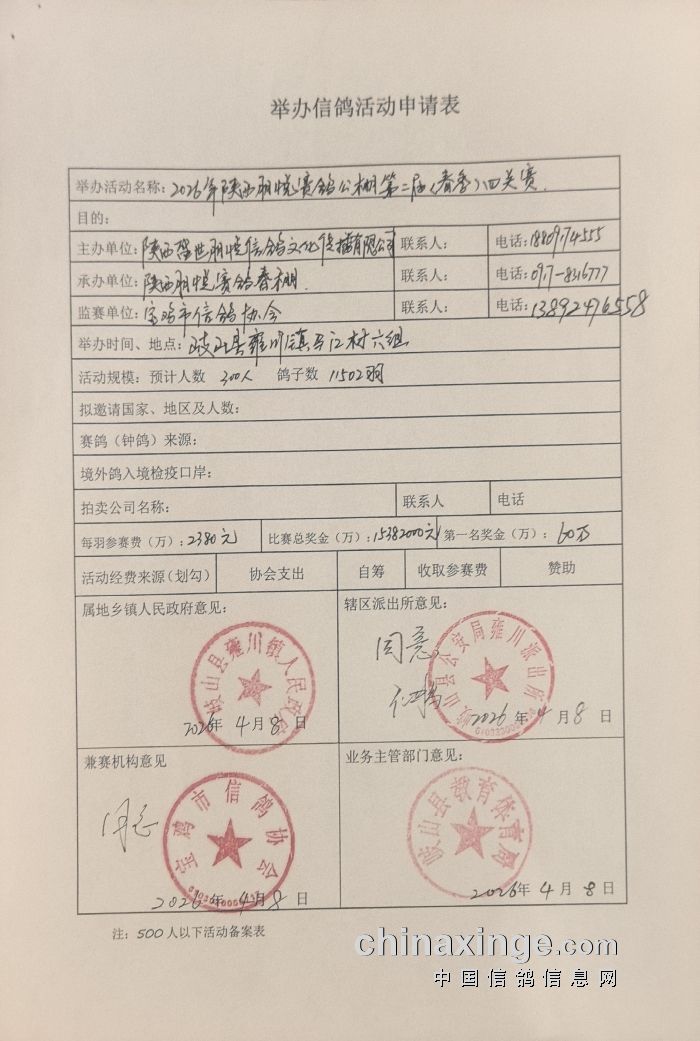 陕西朋悦赛鸽春棚第二届全额奖金已经存入三方共管账户,所有手续已经相关部门审批,合规合法。