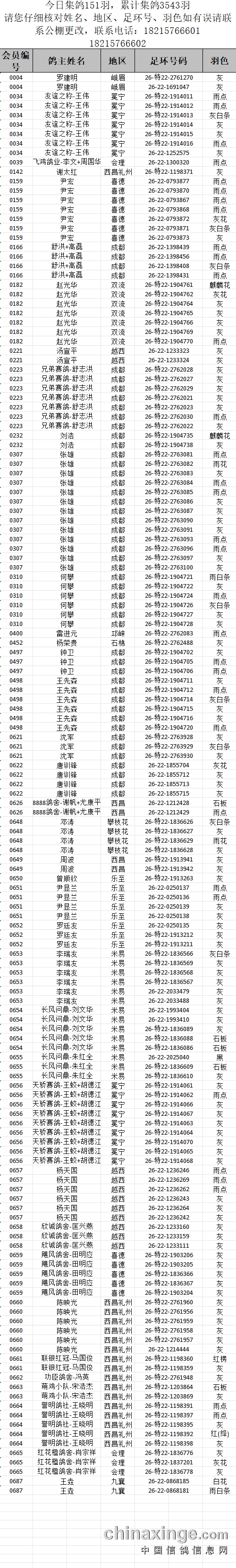 提示:如果此页面是训放清单,要想快速查询鸽环号,请按