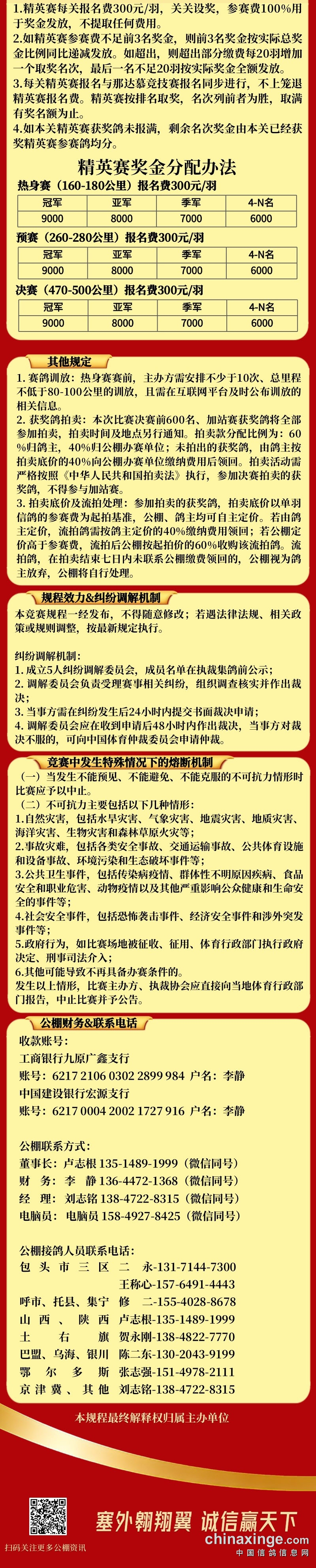 内蒙古·包头塞外翔公棚2026赛前加奖通知