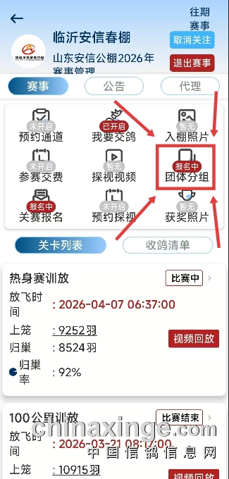 请参赛会员登录【鸽-小-宝】APP自助编辑分组.