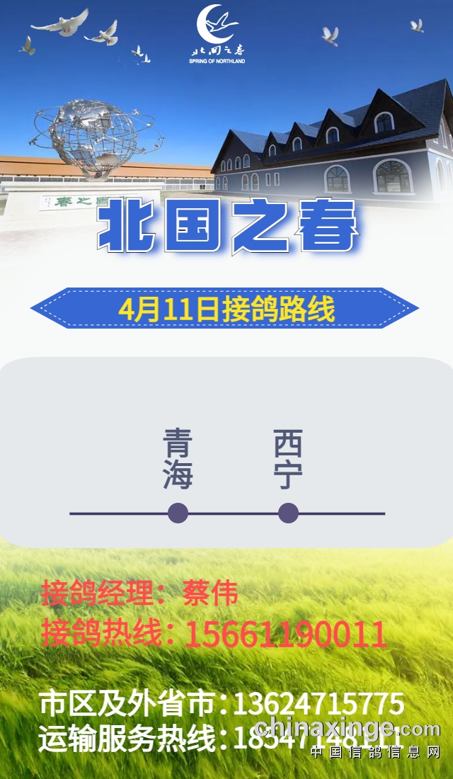 北国之春(大秋棚):4月11青海、西宁及周边接鸽计划