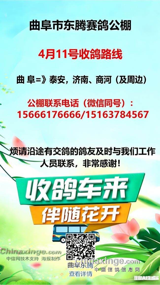 山东省曲阜东腾赛鸽公棚26届(秋)4月16号收鸽路线,欢迎来电