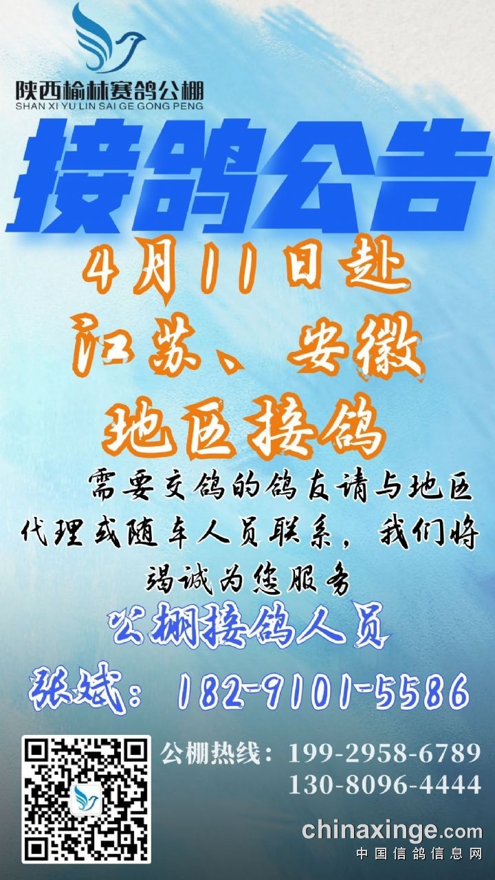 陕西榆林赛鸽公棚4月11日赴江苏、安徽地区接鸽公告
