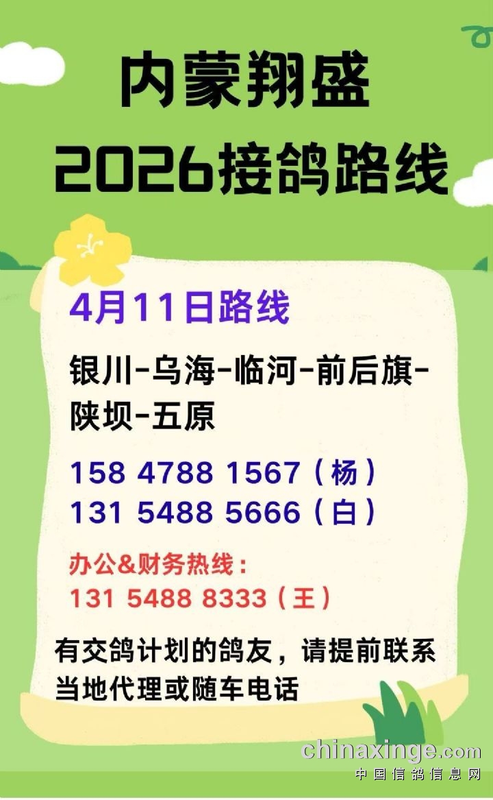 内蒙古翔盛赛鸽公棚2026年收鸽明细---不断更新中