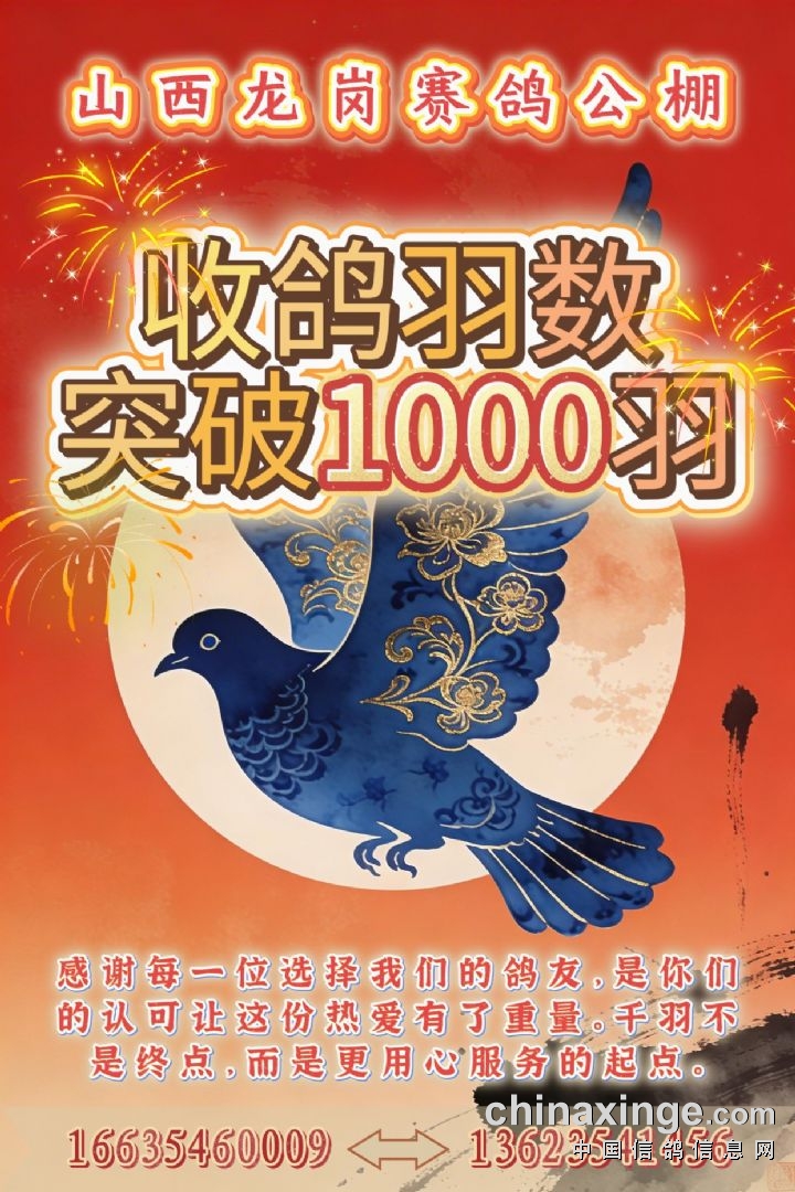 热烈庆祝:山西龙岗赛鸽公棚收鸽羽数突破1000羽!!