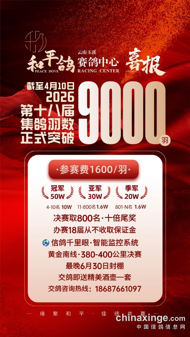 [喜报]和平鸽2026集鸽羽数突破9000羽!