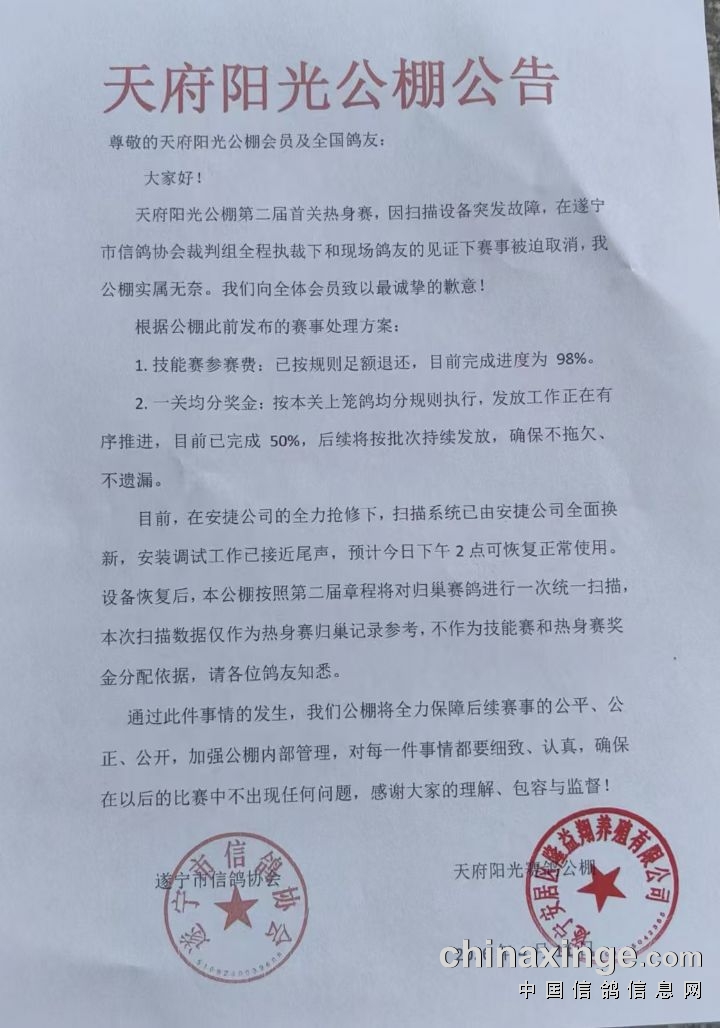 天府阳光春棚第一关热身赛致歉信