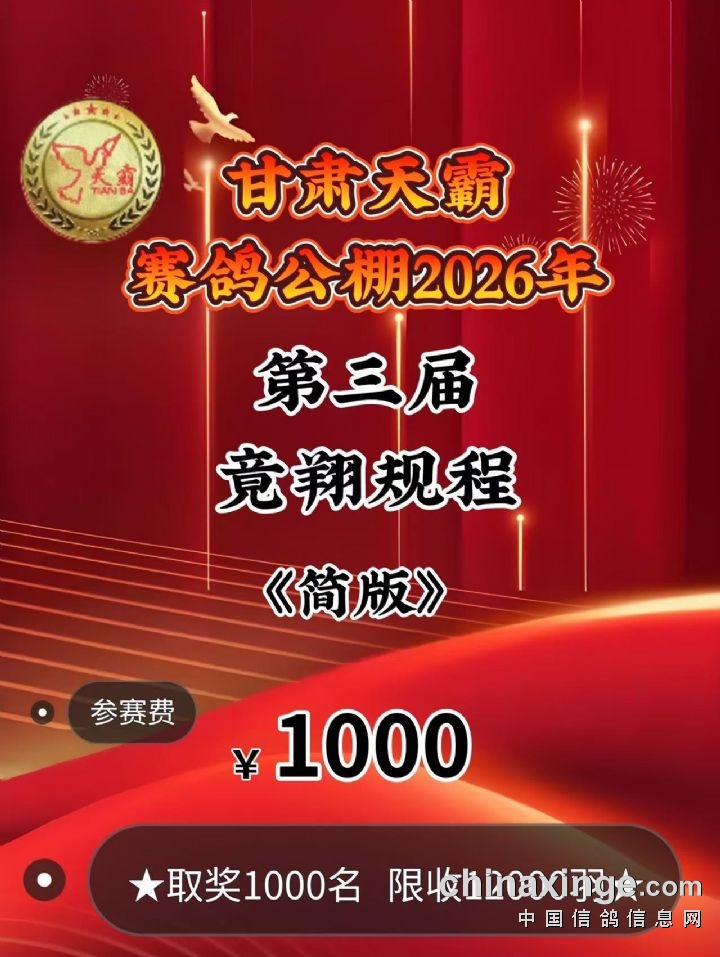 甘肃天霸赛鸽公棚 2026年第三届秋季竞赛规程