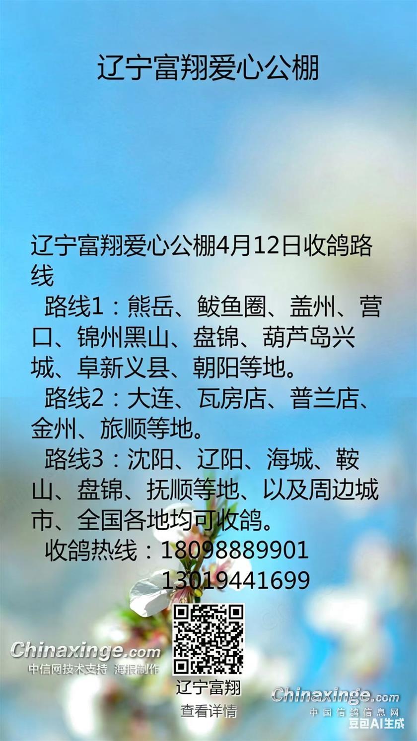 辽宁富翔爱心公棚4月12日收鸽路线
