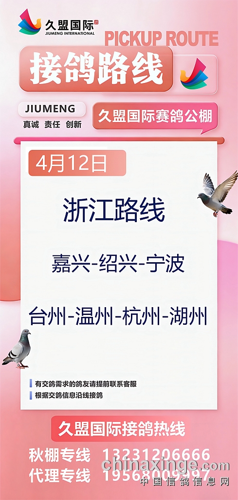 河北久盟国际赛鸽公棚(秋棚)4月9日接鸽路线