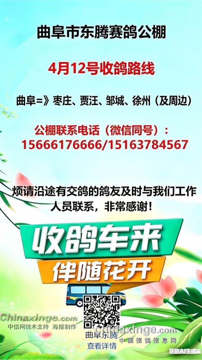 山东省曲阜东腾赛鸽公棚26届(秋)4月16号收鸽路线(3线),欢迎电联:15666176666