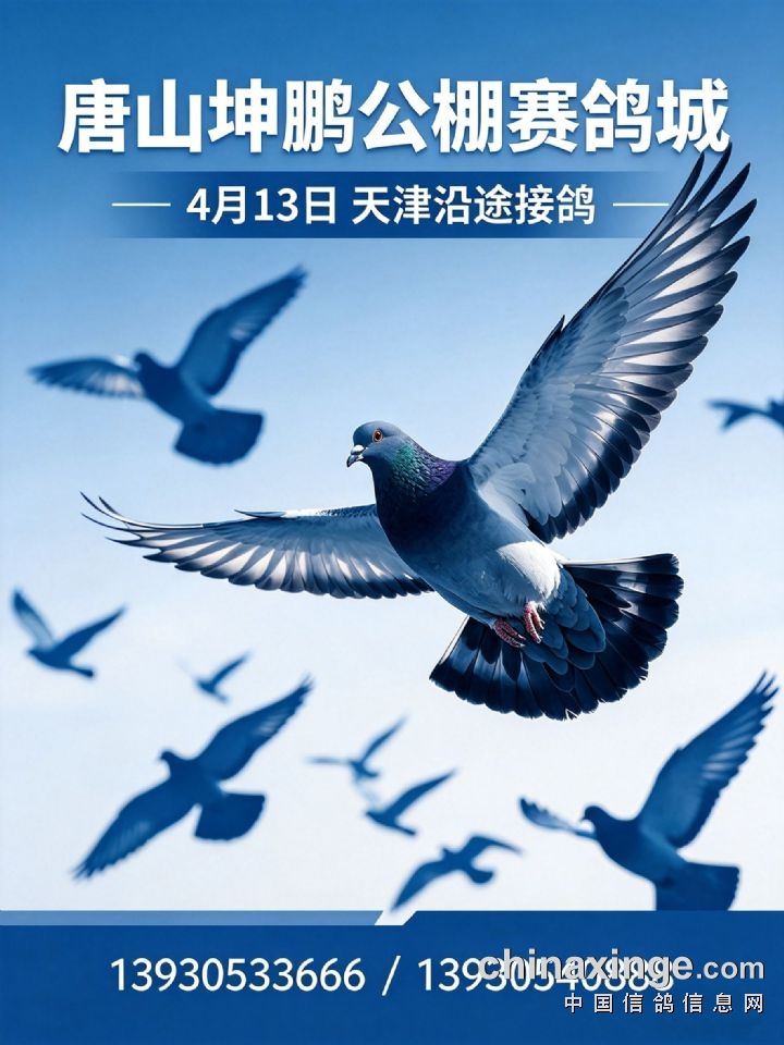 唐山坤鹏公棚赛鸽城4月13日天津沿途接鸽!