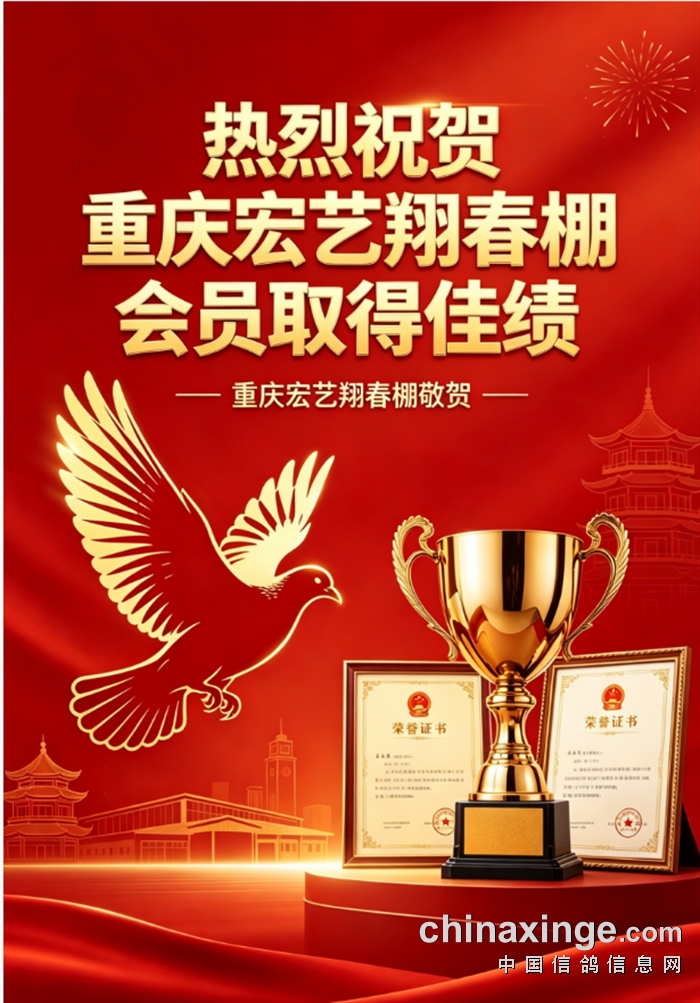 您们好!宏艺翔春棚热烈恭贺我棚会员取得佳绩,但我们的会员交的公棚比较多,我们不能及时得知您获奖 的信息,当您的爱鸽获奖时,请您及时联系我们,让我们共同分享您的快乐!