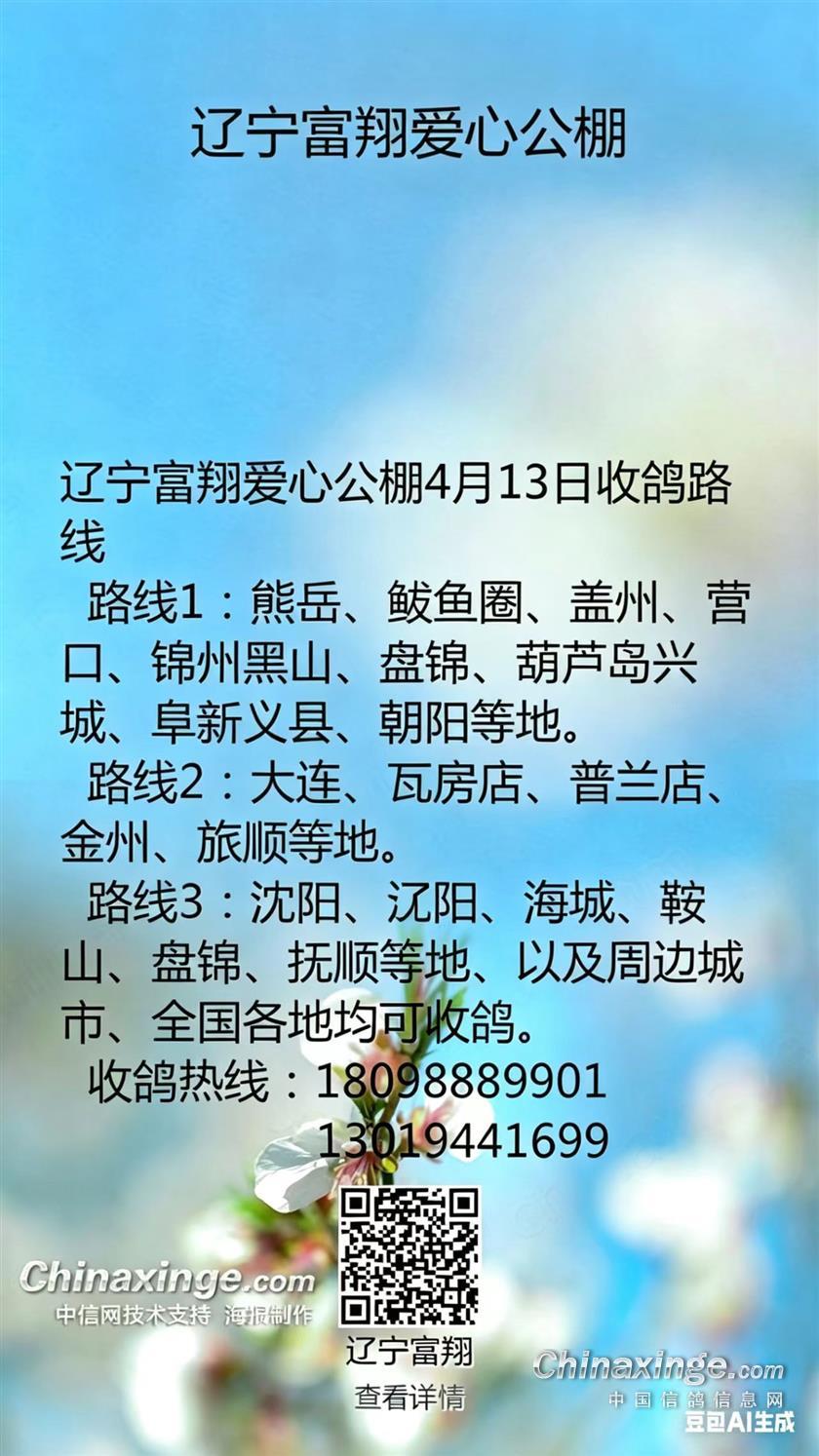 辽宁富翔爱心公棚4月12日收鸽路线