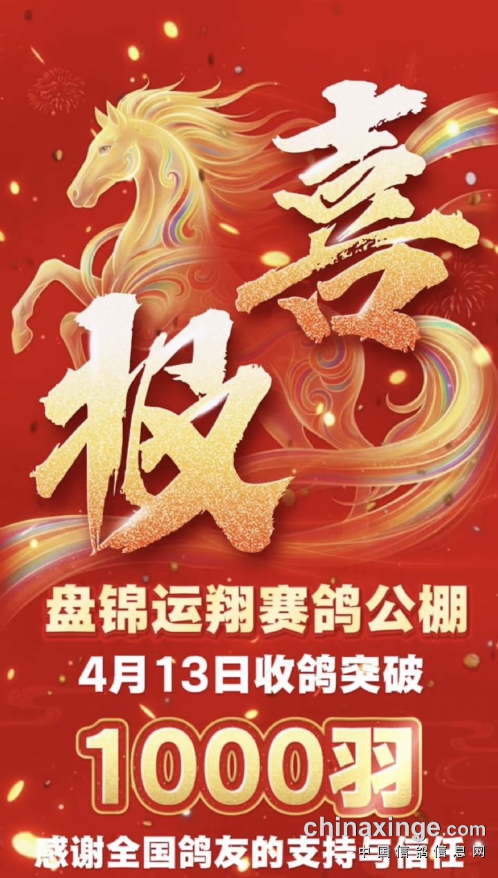 盘锦运翔赛鸽公棚4月13日收鸽突破1000羽