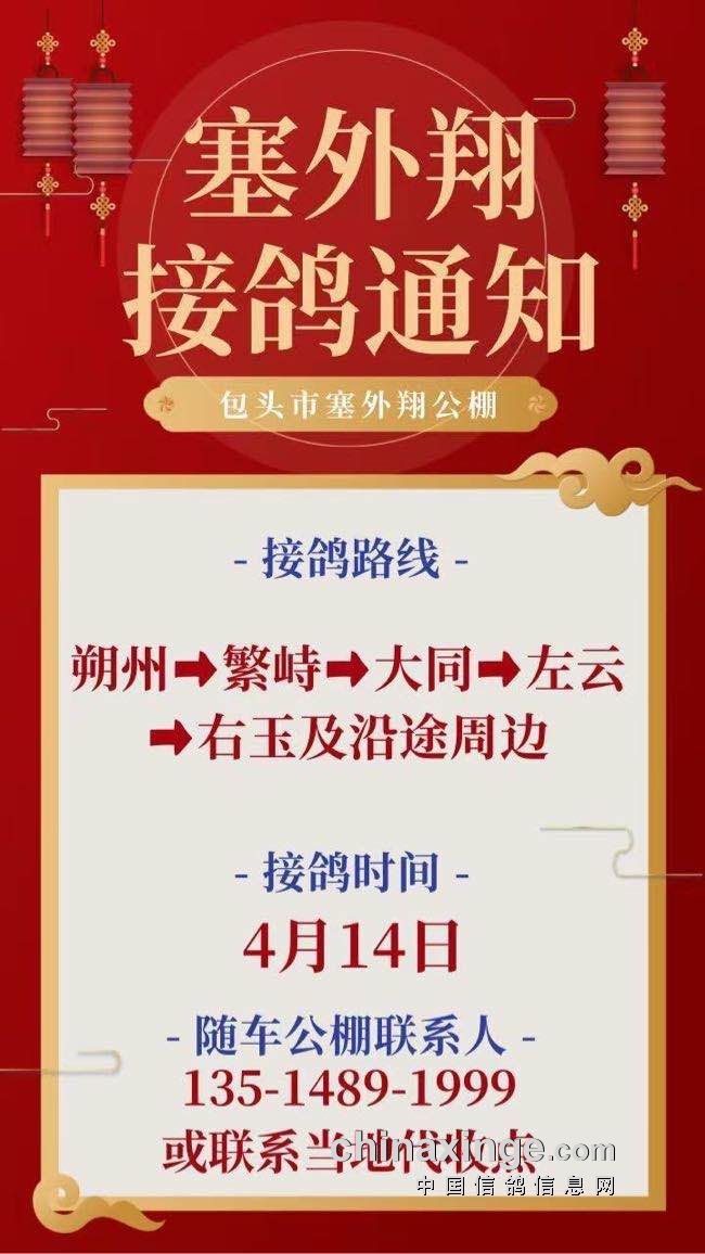 包头塞外翔公棚4月14日山西大同周边接鸽通知