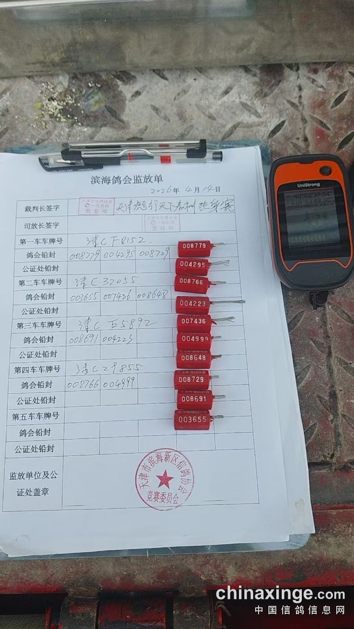 天津彪行天下春棚181公里热身赛将进行人工逐羽扫描集鸽上笼并由天津市滨海新区信鸽协会裁判组亲临现场监管彪行春棚集鸽、铅封、运输、开笼、放飞全过程!