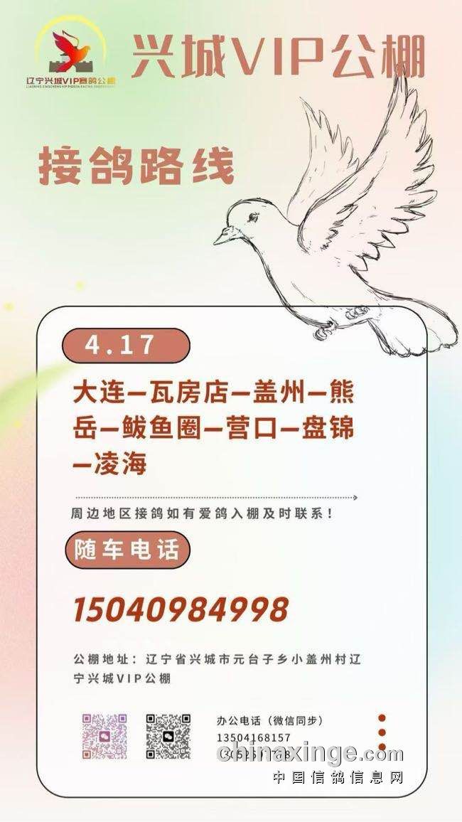 辽宁兴城VIP赛鸽公棚4月17日接鸽路线