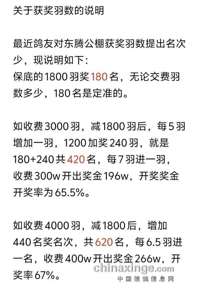 曲阜东腾赛鸽公棚《关于获奖羽数特此说明》