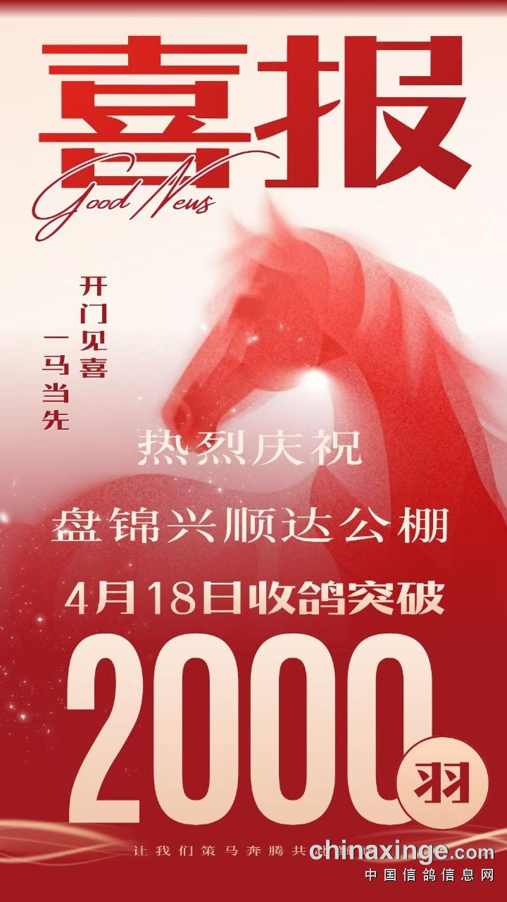 盘锦兴顺达公棚4月18日收鸽突破2000羽!